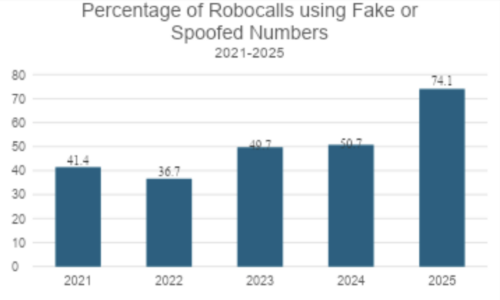 In the first nine months of 2025, 74% of all robocalls detected by Nomorobo’s Honeypot tracking system used fake local area codes — up nearly 50% compared to 2024.