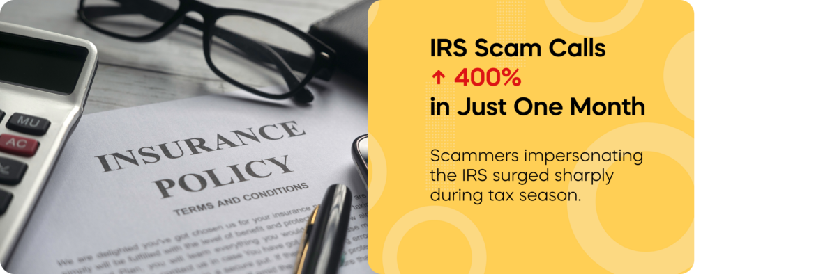 Between December and January alone, there was a 400% increase in scam calls and a 50% increase in scam text messages referencing “IRS,” “Internal Revenue Service,” or “taxes.”